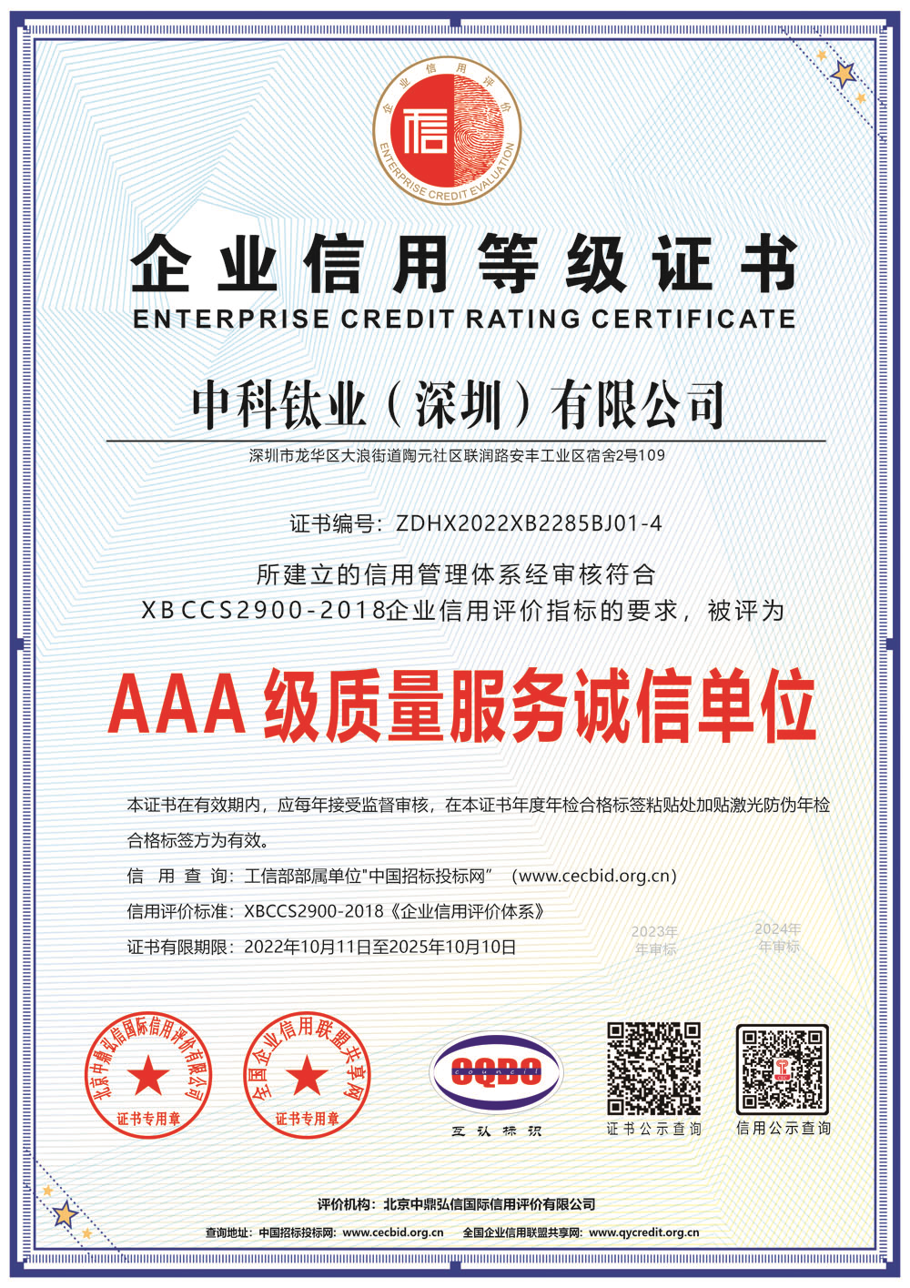 努力使中科鈦業(yè)成為全球鈦制品行業(yè)的卓越品牌,成為受人尊敬的鈦產(chǎn)品制造企業(yè)